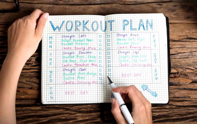 detailed workout descriptions with rep count and rest periods